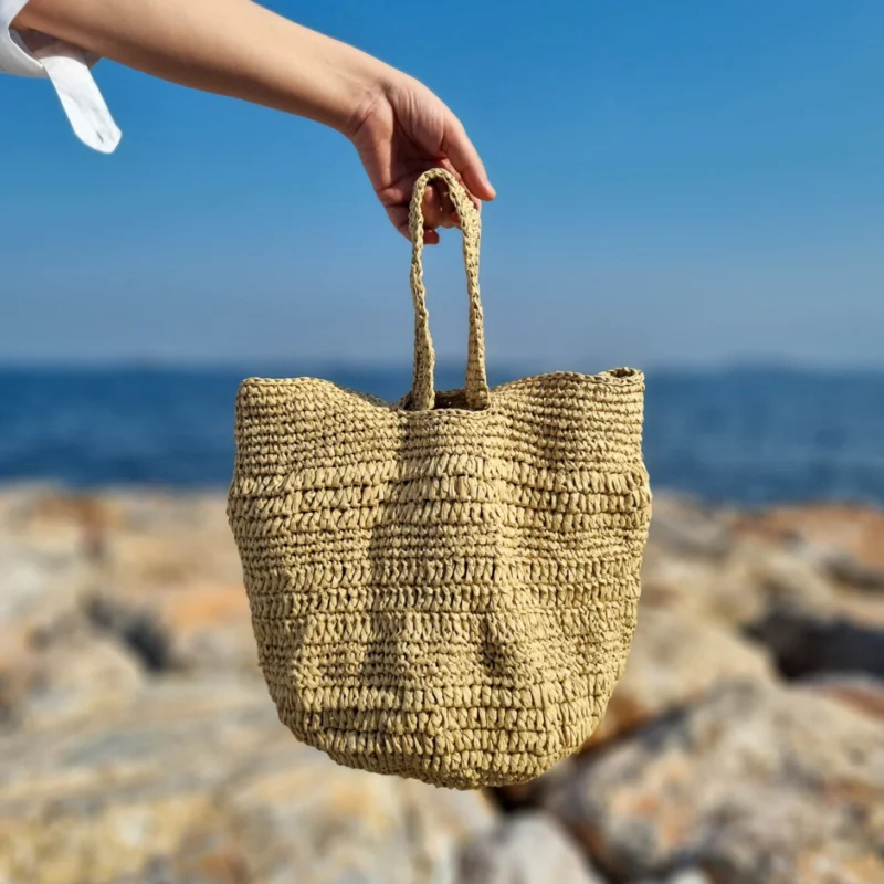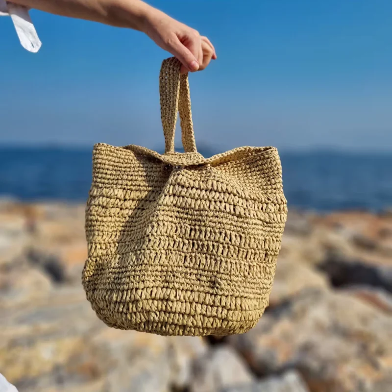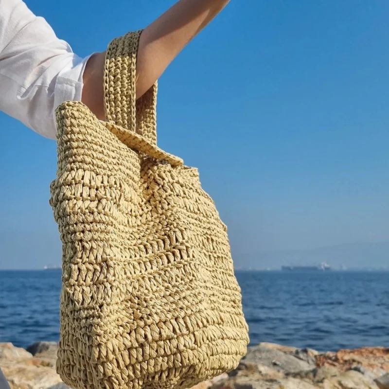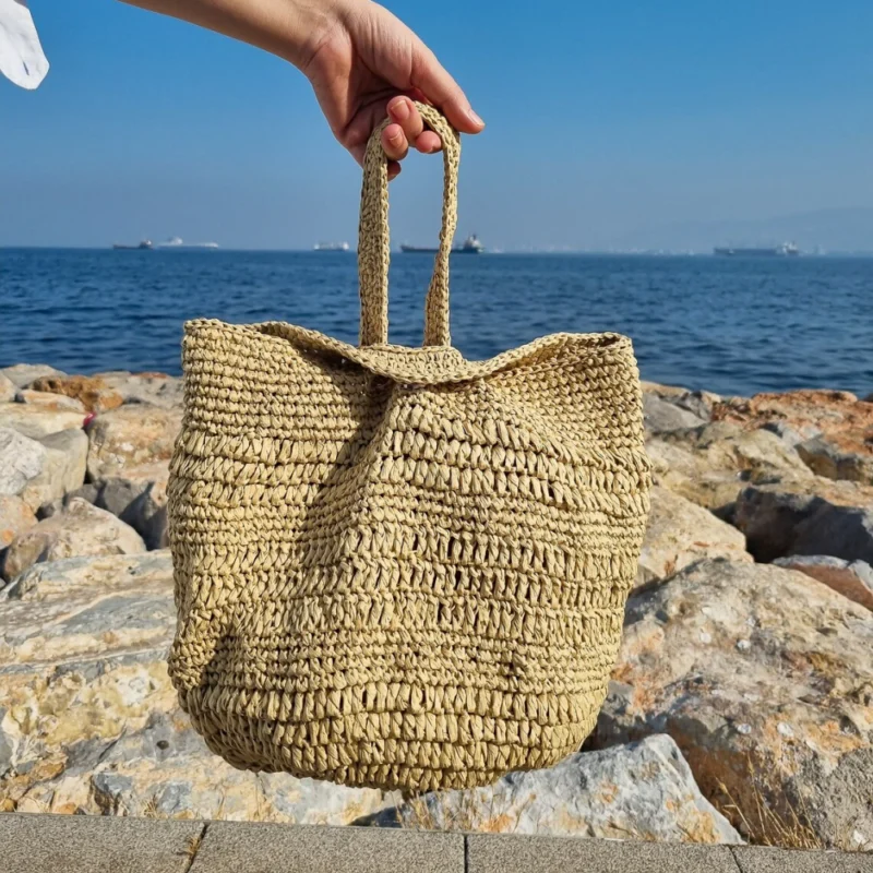 Japon düğüm çanta modeli, el yapımı raffia tote çanta ile tarzınıza zarafet katın. Plaj günlerinizden günlük gezilere kadar her anınıza eşlik etmek için tasarlanmıştır.
